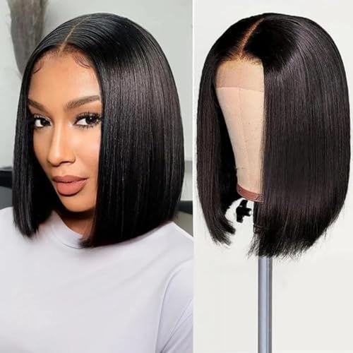 Wear and Go Glueless Bob Wigs Human Hair Straight Bob Wigs Human Hair Pre Plucked Pre Cut 4x4 HD Lace Front Glueless Wigs Human Hair 180% Density Short Straight Bob Wigs for Black Women (10 Inch)